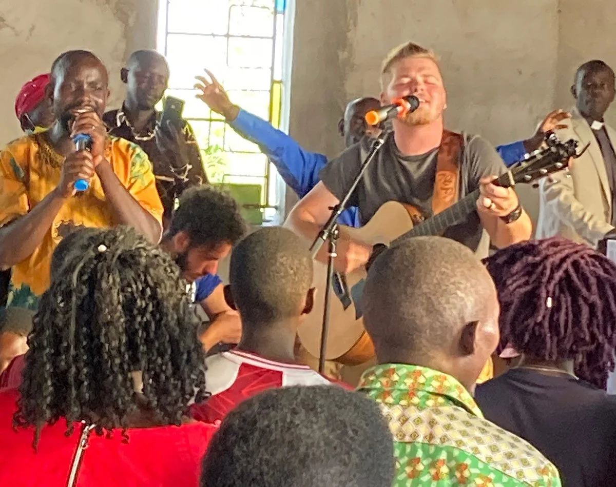 THP student David Lawson leads worship at Calvary Chapel Ishunga, Uganda. Participants spend three months in Uganda, serving in all facets of the Uganda Kids Project (another branch of AFC) and CC Ishunga.