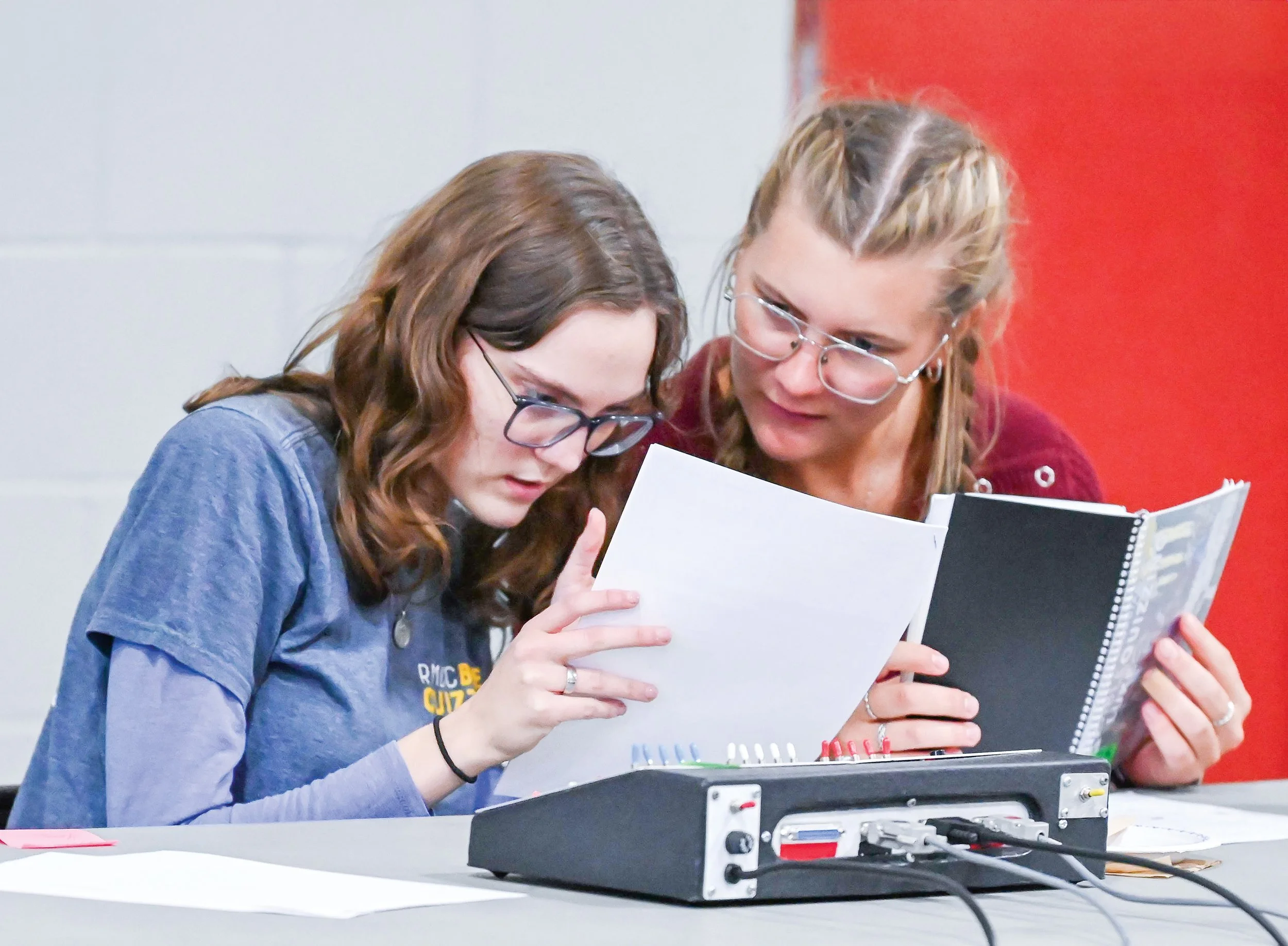 A teen uses a Bible memorization tool to test her skills. Quizzing helps build a strong biblical foundation for RMCC’s youth.