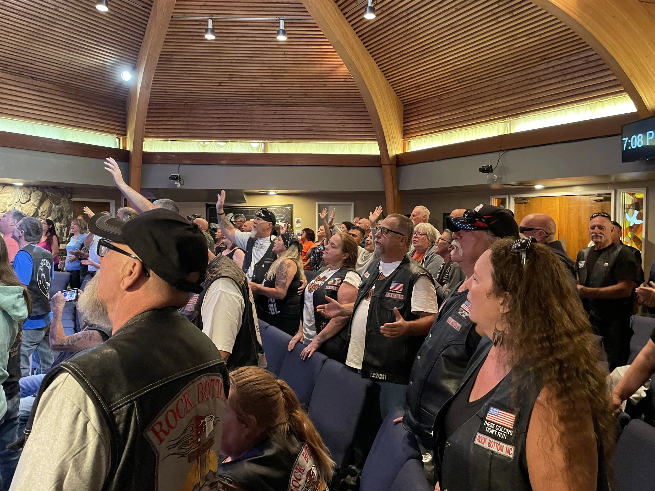 The weekend-long event kicks off Friday night with worship and Bible study. On Saturday, they enjoy breakfast together, followed by more worship and Bible study before taking a 30-minute ride to White Pines, CA. The event ends with “Hug-a-Biker Sunday”. This gives the church the opportunity to “worship alongside bikers who have come to know Jesus through very diverse and extreme backgrounds,” Connie shared. She marveled at the beauty of “watching a former inmate, who had served time in prison for murder, worship Jesus alongside a 70-year-old grandmother who has served Jesus every day of her life.”