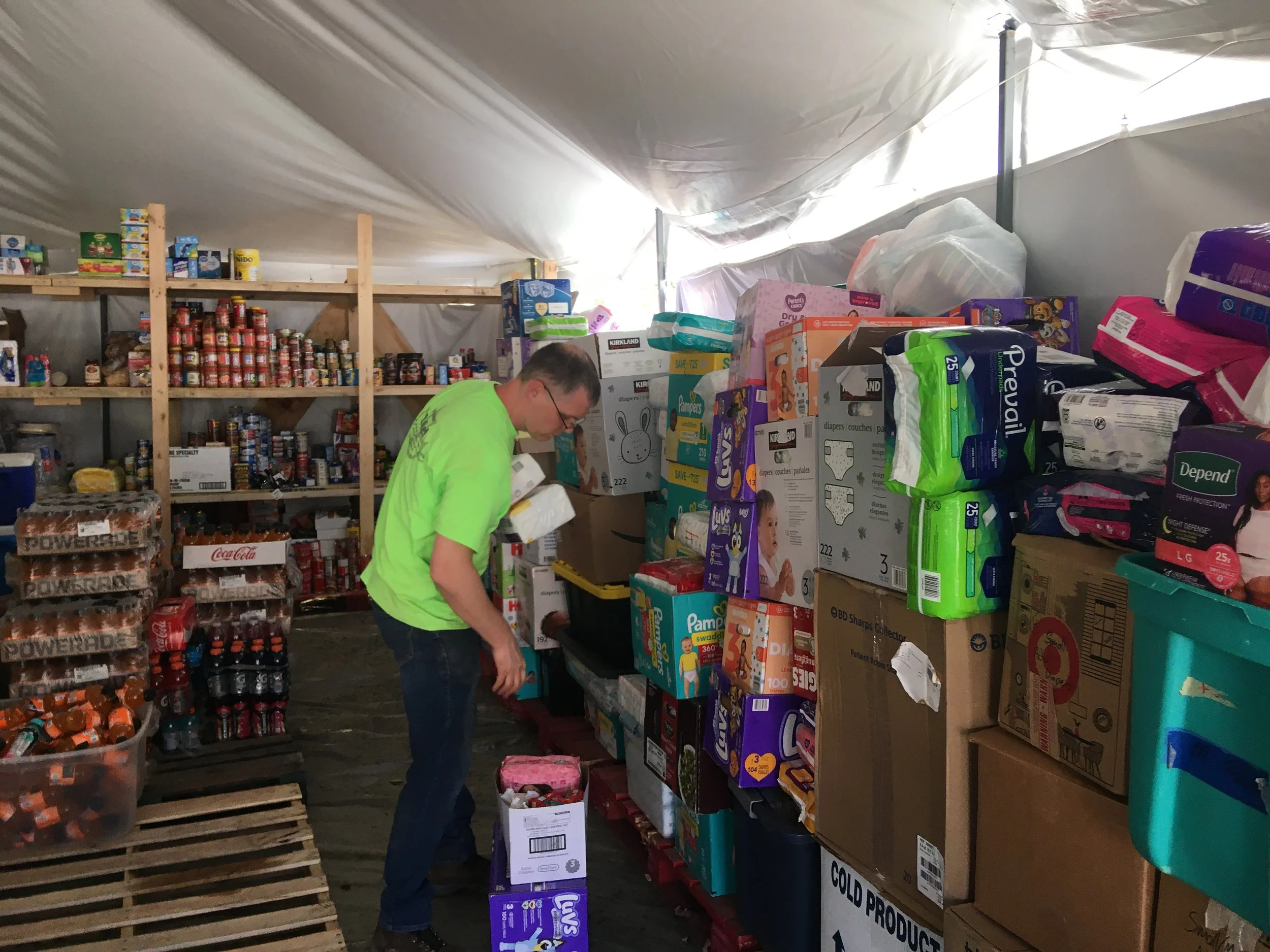 Pointing out several in his church, Billy acknowledges it is their steadfast commitment that helps keep things flowing smoothly: “Zach Slates wrote the program that initialized jobs, volunteers, and organized acquisitions; his wife, Robin, and another volunteer, Laure Bowers, organized two 40-foot tents filled with donations of dry goods and clothes; and Corki Hall comes daily to work with food acquisition and distribution. Paul Hirsh and Jeff McElmurray faithfully lead teams to jobs, directing each day’s work and ministering to families.