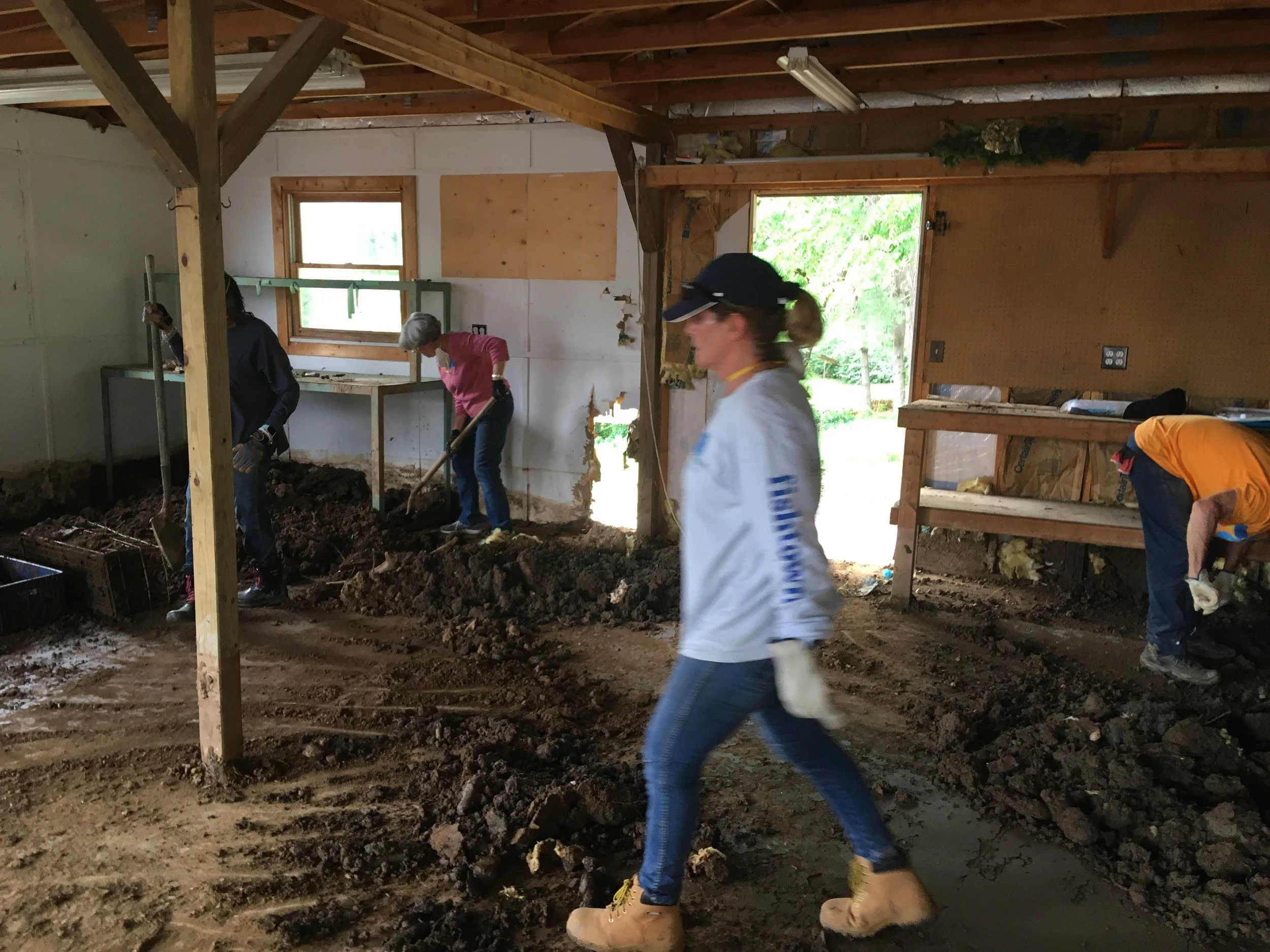 A mud-out is a lengthy, labor-intensive process that removes muddy, wet debris and contents destroyed by floodwaters before a home can be restored.