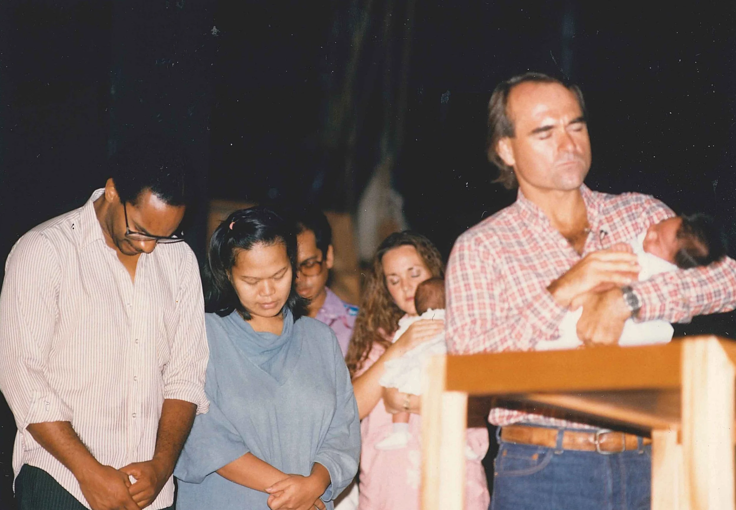 Pastor Bill Stonebraker dedicates a baby at CC Honolulu, HI.