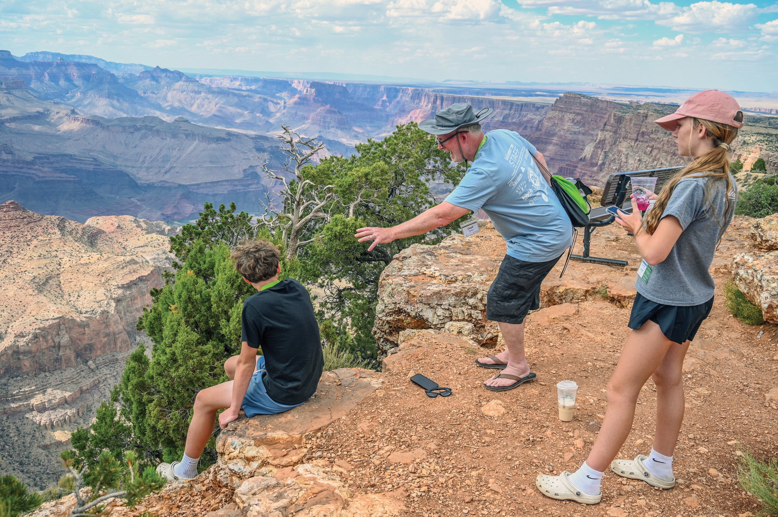 Right: Calvary Chapel Pastor Chris Wimberly (right) of Selah Hills Church in Georgetown, TX, and his son Canon, get their first glimpse of the Grand Canyon.