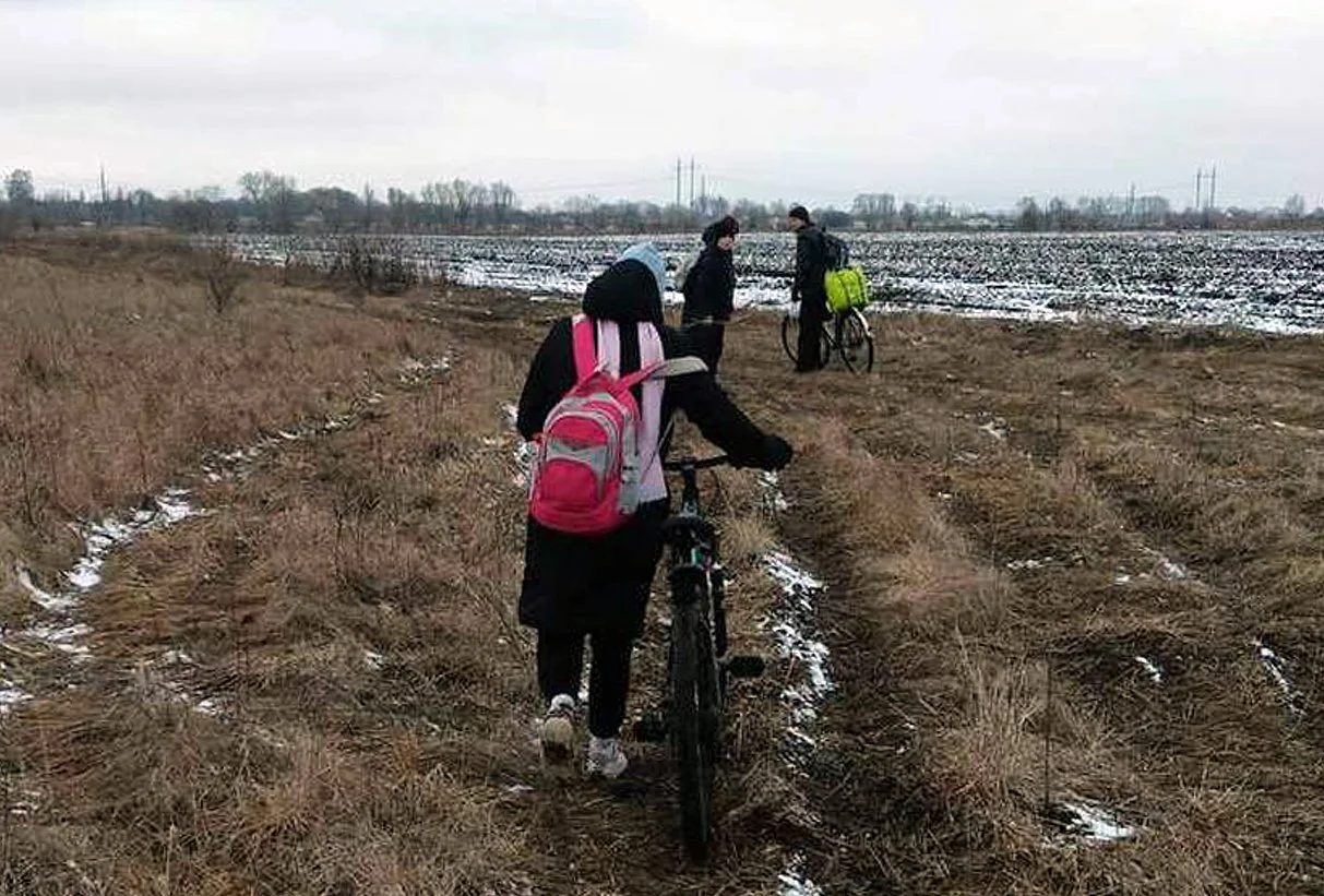 When Pastor Vadym Kotolenets and members of his Calvary Chapel Nizhy, Ukraine, congregation evacuated from the village, a miraculous overnight frost provided an hour of firm ground to transport the small children in the one car available. As soon as the sun was high in the sky, the track turned back to mud. Photo courtesy of Tanya Kotolenets