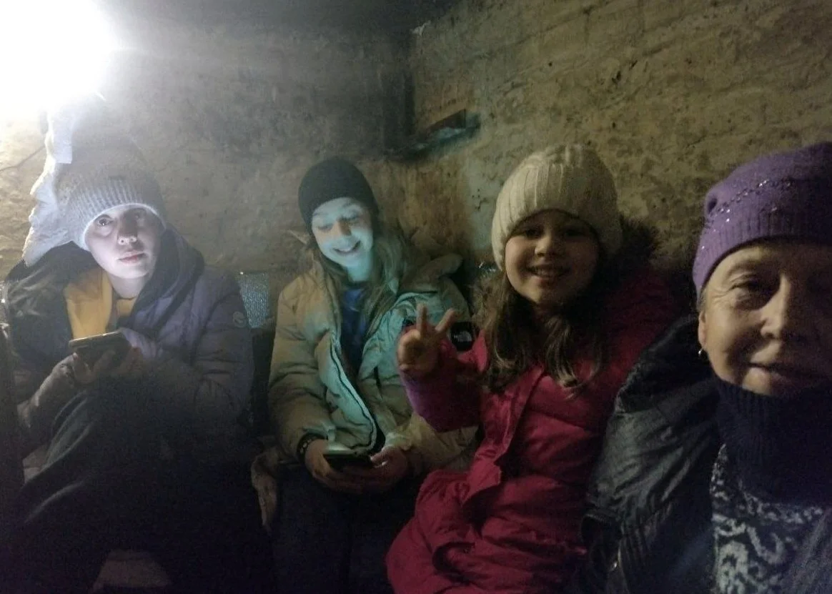 Tanya and her daughters shelter in their grandmother’s cellar during the early days of the war. Currently, Nizhyn experiences multiple air-raid alerts per day. Kamikaze drones are the most frequent threats; missiles are the most dangerous. Russia is so close that missiles can arrive before the air-raid sirens sound the alarm. Photo courtesy of Tanya Kotolenets