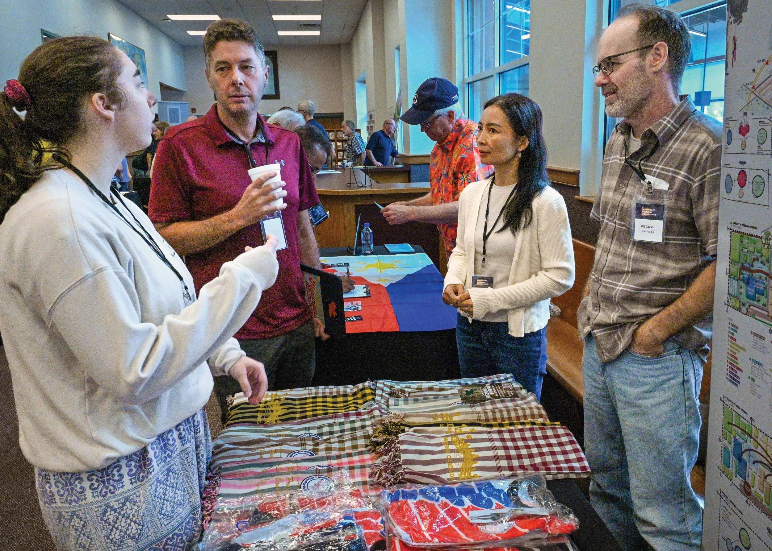 Juliana and Jenevieve Moon, daughters of Pastor Arron and Vicky Moon of Refuge Fellowship CC in Chiang Mai, Thailand, excitedly engage with a conferencegoer.